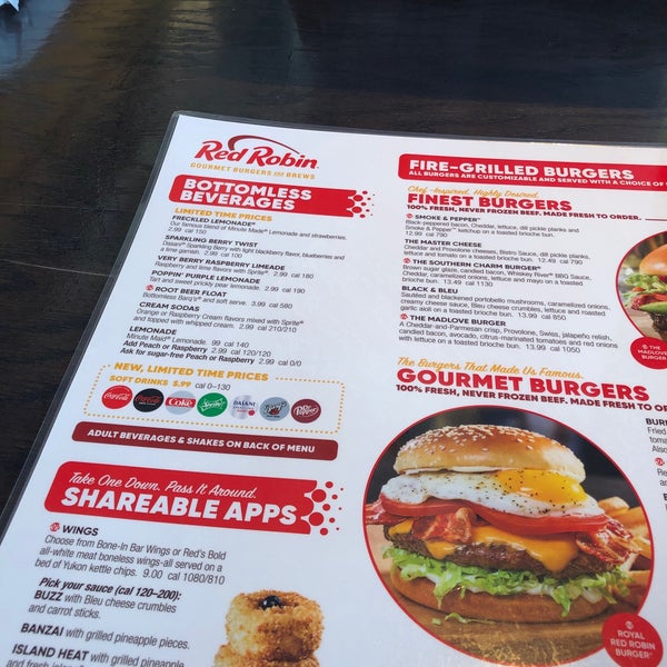 Menu Picture Of Red Robin Gourmet Burgers Fort Myers Tripadvisor